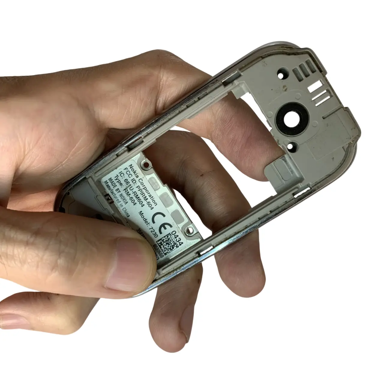 – این مجموعه فابریکی و کارکرده است؛ یعنی شاسی پشت به‌همراه ماژول آنتن، میکروفون و کانکتور هندزفری که به‌صورت اصلی روی گوشی نوکیا 7230 نصب شده و سپس از روی دستگاه باز شده است.