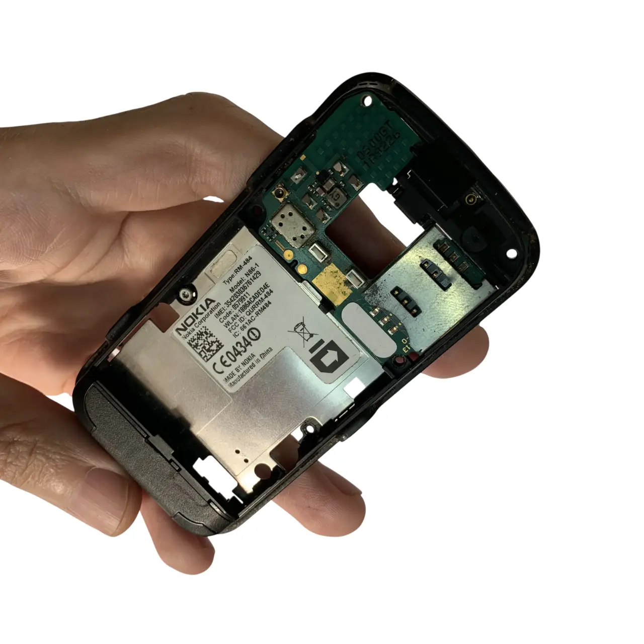 – این مجموعه فابریکی و کارکرده است؛ یعنی قاب پشت بههمراه اسپیکر، برد سیمکارت و کانکتور هندزفری که بهصورت اصلی روی گوشی نوکیا N86-1 نصب شده و سپس از روی دستگاه باز شده است.